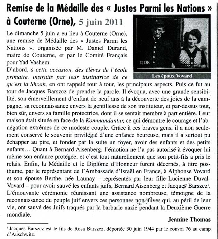 Article de presse – Article de l’UDA770 – Comité Français pour Yad Vashem