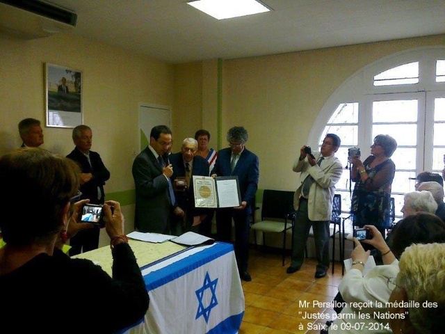 Le 4 mars 2014 , Yad Vashem – Institut International pour la Mémoire de la Shoah, a décerné à Gérard Persillon le titre de Juste parmi les Nations.