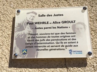 Plaque en hommage à Alice Grout et Paul Wherle – Comité Français pour Yad Vashem